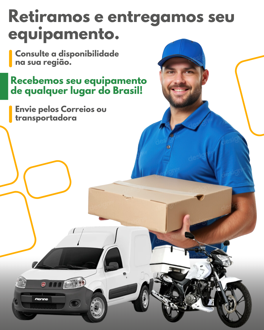 Realizamos a coleta para avaliação, ou o cliente pode optar por entregar pessoalmente (sob agendamento), via correios ou transportadora de sua preferência.